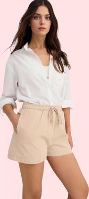 Bej rengi, her türlü üst giyim ile kolayca kombinlenebilir. Hafif ve yumuşak dokusuyla gün boyu rahatlık hissi sunan şort, aynı zamanda dayanıklı yapısıyla uzun süre kullanım imkanı sağlar. Makinede yıkanabilir olması da pratikliğini artırıyor. Bu yaz şıklığını ve rahatlığını aynı anda yakalamak için ideal bir seçim.