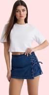 Ersefa Kadın Pamuklu Kısa Boy Denim Şort Etek Düz Desen Normal Bel Bağcıklı Yaz Aylarının Vazgeçilmezi