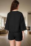 Bu muhteşem pijama takımının detaylarıyla kendinizi şımartın. Yumuşak ve nefes alan %100 pamuk müslin kumaşı, gün boyunca rahatlık sağlar. Şal yakası ve truva kol detaylarıyla modern bir görünüm sunarken, geniş paçalı şortları hareket özgürlüğünüzü kısıtlamaz. Normal beliyle rahat bir uyum sağlar ve her vücut tipine uyar.