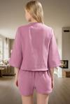 Bu muhteşem pijama takımının detaylarıyla kendinizi şımartın. Yumuşak ve nefes alan %100 pamuk müslin kumaşı, gün boyunca rahatlık sağlar. Şal yakası ve truva kol detaylarıyla modern bir görünüm sunarken, geniş paçalı şortları hareket özgürlüğünüzü kısıtlamaz. Normal beliyle rahat bir uyum sağlar ve her vücut tipine uyar.