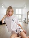 Yumuşak ve nefes alan %100 pamuk kumaştan üretilen bu pijama takımı, gün boyu konfor sağlar. Panda desenleri ile eğlenceli ve şirin bir havaya sahiptir. Bisiklet yakası ve kısa kolları sayesinde sıcak yaz günlerinde serin kalmanıza yardımcı olur. Regular kalıbı ile rahat bir uyum sunar. Normal bel yüksekliği ile vücudunuza mükemmel bir şekilde oturur. Boru paça şortu ile hareket kısıtlaması yaşamazsınız. Giydiğiniz anda kendinizi rahat ve huzurlu hissedeceksiniz. Makinede 30 derecede yıkanabilir.