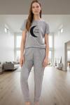 Pamuklu yapısıyla cildinizde yumuşak bir his bırakır ve gün boyu konfor sağlar. Galaksi deseni ve 'noon light' yazılı tişörtüyle tarzınızı yansıtabilirsiniz. Regular kalıp ve boru paça pantolon modeliyle her vücut tipine uyum sağlar. Tüm gün evde rahatça vakit geçirmenizi mümkün kılar.