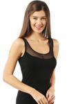 Kadın Pamuklu Likralı Tül Detaylı Kalın Askılı Atlet | Siyah K20575
