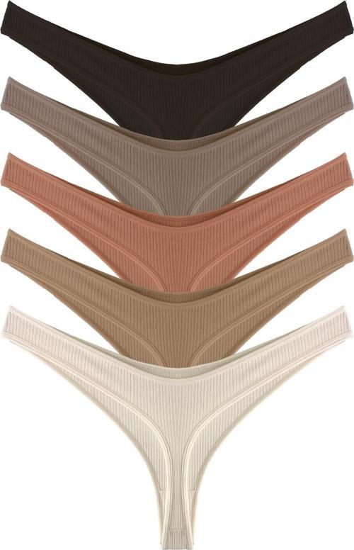 Kadın Pamuklu ve Likrali Fitilli Kaşkorse Tanga Külot 5'li Paket-2