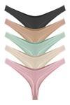 Kadın Pamuklu ve Likrali Fitilli Kaşkorse Tanga Külot 5'li Paket
