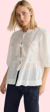 Bu %100 pamuklu bluz, yaz aylarında hem şık hem de rahat hissetmenizi sağlayacak şekilde tasarlandı. Düz ve sade tasarımı, her türlü kombinle mükemmel bir uyum sağlar. Gömlek yakası ve truvakar kollarıyla klasik bir şıklık sunarken, önden bağcıklı detayı modern bir dokunuş katıyor. Yumuşak ve nefes alan pamuk kumaşı gün boyu konforlu bir kullanım sunar. Hafif ve serin tutan yapısıyla sıcak yaz günlerinde bile rahat edebilirsiniz.