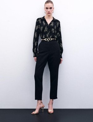 Sateen Kemerli Pantolon - Siyah