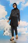 Çamaşır Kenti markasıyla öne çıkan Kadın Pantolonlu Desenli Tam Tesettür Mayo Lacivert, plajda rahat ve şık bir görünüm sunar.