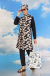 Çamaşır Kenti Kadın Pantolonlu Desenli Tam Tesettür Mayo Lacivert, plajda şıklığı ve rahatlığı bir arada arayan tesettürlü kadınlar için ideal bir seçenektir.