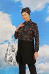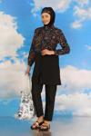 Çamaşır Kenti markasıyla öne çıkan Kadın Pantolonlu Desenli Tam Tesettür Mayo Siyah, plajda rahat ve şık bir görünüm sunar.
