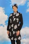 Çamaşır Kenti Kadın Pantolonlu Desenli Tam Tesettür Mayo Siyah, plajda şıklığı ve rahatlığı bir arada arayan tesettürlü kadınlar için ideal bir seçenektir.