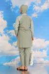 Çamaşır Kenti markasının kalitesi ve şıklığı ile öne çıkan Kadın Pantolonlu Desenli Tam Tesettür Mayo Su Yeşili, plaj giyiminde tarzını konuşturmak isteyen kadınların vazgeçilmezi olmaya aday!