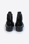 Yağmurlu günlerde tarzından ödün verme. Parlak siyah dış yüzeye sahip bu kadın Chelsea yağmur botu, suya dayanıklı yapısı sayesinde kuru kalmanı sağlar. Kalın, dişli tabanı ile ıslak zeminlerde güçlü tutuş sunarken, esnek yan paneller kolay giyim imkânı verir.