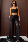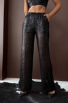 Bu pantolon, payet detayları ile zenginleştirilmiş olup, her ortamda dikkat çekici bir görünüm sağlar. Gece davetleri, özel etkinlikler veya şık akşam yemekleri için ideal bir parça olan bu ürün, hem şıklığı hem de konforu bir arada sunar.