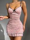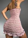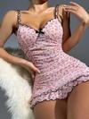 Kadın Pembe Askılı Gecelik – Piliseli Çiçek Desenli Tatlı Model