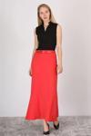 Bu şık tesettür etek, kemer detayı ve yüksek bel tasarımı ile zarif bir görünüm sunar. Hem günlük kullanımda hem de özel davetlerde rahatlıkla tercih edilebilir. Şık bir bluz veya gömlek ile kombinlenebilir.