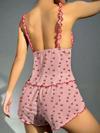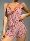 -Kiraz desenli şortlu gecelik takımı zarif dantel detaylarıyla süslenmiş, ince askılı tasarım, hem gündüz hem de gece şıklığınızı tamamlar.