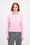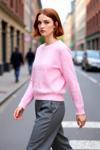 Ürün Özellikleri: Regular kalıp, akrilik karışımlı materyal, nakışlı / işlemeli desen, bisiklet yaka, standart kol, triko kumaş, pembe renk.