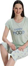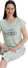 Serena model kadın pijama takımı, yaz aylarının ferahlığını ve ev içi şıklığını bir araya getiriyor. Kısa kollu üst parçası, klasik gömlek yakası ve önden düğmeli tasarımıyla zamansız bir görünüm sunarken; kapri boy alt parçası, sıcak havalarda ideal konfor sağlar.