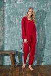 - Dantel detayları ile feminen dokunuşlar ekleyerek pijama takımınıza zarif bir hava katarken, normal bel kesimi rahat hareket etme özgürlüğü tanır