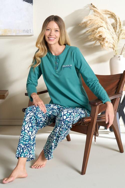 Kadın Pijama Takımı Uzun Kol Mevsimlik Düğmeli