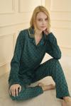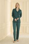 Pijamerry Kadın Büyük Beden Gömlek Yaka Süet Uzun Kol Pijama Takımı 5259- 1 Adet Yeşil-2XL - Image 1