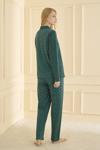 Pijamerry Kadın Büyük Beden Gömlek Yaka Süet Uzun Kol Pijama Takımı 5259- 1 Adet Yeşil-2XL