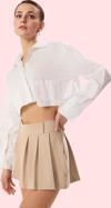 Yaz aylarının vazgeçilmezi olan bu şort etek, günlük stilinizi tamamlayacak mükemmel bir parça. Haki rengi ve piliseli tasarımıyla dikkat çeken şort etek, rahatlığı ve şıklığı bir araya getiriyor. Dokuma kumaş yapısı sayesinde nefes alabilir ve gün boyu konfor sunar. Orta bel kesimi ile vücudunuza mükemmel otururken, mini boyu ile bacaklarınızı ön plana çıkarır. Finike dokuma tekniğiyle üretilen şort etek, dayanıklı ve uzun ömürlü kullanım sağlar. Casual tarzınıza mükemmel uyum sağlayacak bu şort etek, tişörtler, crop top'lar ve spor ayakkabılarla kombinlenebilir. Günlük kullanım için ideal olan bu şort etek, yaz aylarının sıcak günlerinde serin ve şık kalmanızı sağlar. T10 yıkama talimatına uyarak ürününüzün uzun süreli kullanım ömrünü koruyabilirsiniz. Türk malı olan bu şort etek, kalite ve konforu bir araya getiren mükemmel bir seçimdir.