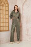 Kadın Pliseli Beli Lastikli Pantolon Tunik Gömlek Ikili Bürümcük Salaş Takım 3573330 - Image 1