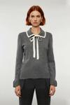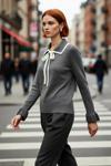 Ersefa Kadın Polo Yaka Bağcıklı Triko Kazak Renk Bloklu Uzun Kollu Kışlık Ofis Şıklığı İçin Rahat Seçim