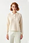 Ersefa Kadın Polo Yaka Oversize Triko Kazak Düşük Kollu Rahat Kesim Günlük Şıklık Kombinleri İçin İdeal