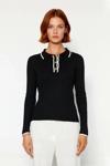Ürün Özellikleri: Fitted kalıp, Viskoz karışımlı materyal, Renk bloklu desen, Polo yaka, Standart kol, Triko kumaş, Siyah renk.