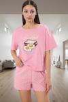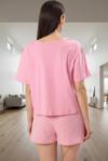 Sabah güne keyifli bir başlangıç yapın! Bu sevimli pembe puantiyeli pijama takımıyla evinizde rahatlığı ve şıklığı bir arada yaşayın. Yumuşacık %100 pamuklu kumaşıyla cildinizde ipeksi bir his bırakırken, eğlenceli baskısıyla da gününüze neşe katacak. Kısa kollu tişörtü ve şortu ile yaz aylarının vazgeçilmez parçası olacak bu pijama takımı, rahat bir uyku ve keyifli bir ev deneyimi sunar. Rahat kalıbı ve nefes alan kumaşıyla gün boyu konforu hissedeceksiniz. Makinede kolayca yıkanabilen bu pijama takımı, pratik kullanımıyla da hayatınızı kolaylaştıracak.