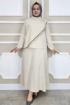 Ka Hijab Parlak Dokulu Bol Kesim İkili Takım - Bej