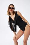 Çamaşır Kenti Püsküllü Mayo Siyah ile plajda ve havuzda kendinizi özgür ve şık hissedin. Siz de tarzınızı yansıtmak ve dikkatleri üzerinize çekmek için hemen sepetinize ekleyin!