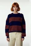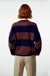 Kadın Oversize Fermuarlı Çizgili Dik Yaka Düşük Kollu Triko Kazak Kış Günleri İçin Şık Seçim - Image 1