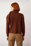 Ürün Özellikleri: Regular kalıp, akrilik polyester materyal, düz desen, şal yaka, düşük kol, triko kumaş, kahverengi renk, Selanik dokuma.