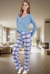 PayBuy Kadın Rahat V Yaka Pamuklu Pijama Takımı Ekose Desenli Boru Paça Kaliteli İşçilik Yüksek Kalite