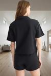 Waffle kumaşının benzersiz dokusu, hem yumuşak hem de nefes alabilir bir his sunarak gün boyu konfor sağlar. Kısa kollu üst kısmı ve rahat şortu sayesinde hareket özgürlüğünüzü kısıtlamadan ev işlerinizi yapabilir veya dinlenebilirsiniz. Aksesuarlı detayları ise takıma şık bir görünüm kazandırır.