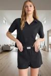 PayBuy Kadın Melanj Örme Pijama Takımı Düğmeli Gömlek ve Şort Zarif Tasarım Rahat Kullanım