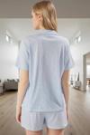 Örme kumaşın yumuşak dokusu ve nefes alabilir yapısıyla yaz sıcağında bile serin ve rahat hissedeceksiniz. Regular kalıbı sayesinde vücudunuza mükemmel şekilde otururken, kısa kollu üst ve boru paça şort ile hareket özgürlüğünüzü kısıtlamaz. Kalpli deseni, takıma şık ve romantik bir hava katarken, mavi rengi de huzur ve dinginlik hissi uyandırıyor. Eşsiz bir uyku deneyimi için bu takımı tercih ederek, her sabah daha enerjik uyanabilirsiniz.