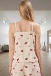 PayBuy Kadın Rahat Yazlık Viskoz Pijama Takımı Dudak Desenli İnce Askılı Şık Görünüm Dayanıklı Malzeme