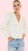 Kumaş: Pamuk Polyester, Desen: Nakışlı / İşlemeli, Kol Tipi: Balon Kol, Yaka Tipi: V Yaka, Kalıp: Regular, Kol Boyu: Uzun, Boy: Regular, Siluet: Basic, Dokuma Tipi: Terrycotton, Materyal Bileşeni: 54% Pamuk, 46% Polyester, Yıkama Talimatı: T10, Menşei: TR, Renk: Ekru, Sezon: İlkbahar / Sonbahar