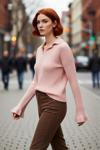 Ürün Özellikleri: Regular kalıp, 80% akrilik ve 20% polyester materyal, düz desen, apaş yaka, standart kol, triko kumaş, pembe renk.