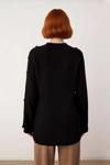 Ürün Özellikleri: Regular kalıp, 100% akrilik materyal, düz desen, bisiklet yaka, İspanyol kol, triko kumaş, siyah renk.