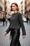 Ürün Özellikleri: Regular kalıp, akrilik polyester materyal, pul payetli desen, bisiklet yaka, standart kol, triko kumaş, gri renk.