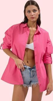 Bu şık plaj gömleği, 36'dan 44'e kadar beden seçenekleriyle mevcuttur. Pembe rengi ile yazlık kombinlerinizde göz alıcı bir parça olacaktır. Boyu regular olan bu gömlek, farklı vücut tiplerine uygun olarak tasarlanmıştır. Plaj kombinlerinizde, günlük hayatta, arkadaşlarınızla buluşmalarda ya da seyahatlerinizde rahatlıkla kullanabilirsiniz.