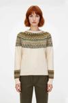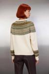 Ürün Özellikleri: Regular kalıp, %75 akrilik %25 polyester materyal, etnik desen, bisiklet yaka, reglan kol, triko kumaş, ekru desenli renk.