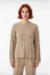 PayBuy Kadın Regular Kalıp Fitilli Triko Kazak Bisiklet Yaka Düşük Kol Uzun Boy Rahat ve Şık Günlük Giyim