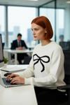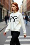 Ersefa Kadın Regular Kalıp Şık Fiyonk Desenli Bisiklet Yaka Uzun Kollu Triko Kazak Kış Kombini Kaliteli